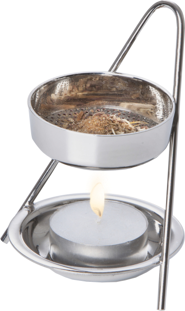 Praktisches kleines Stövchen für das Räuchern über dem Teelicht. Nach dem Erkalten kann man den Einsatz herausnehmen und reinigen.