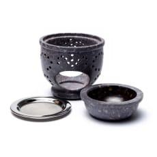 Diese Duftlampe wird mit Sieb und Schale geliefert, wodurch sie Räuchergefäß und Duftlampe in einem ist.