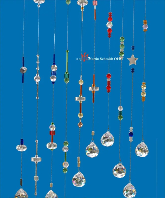 Material: Glasröhrchen, Kristallperlen und anderen Teilen als Endpunkt eine Kristallkugel mit Facettenschliff.