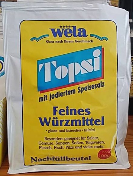 Zubereitung: Für 1 Liter oder 1 kg Speise je nach Geschmack 13 g Topsi verwenden. Sofort löslich.